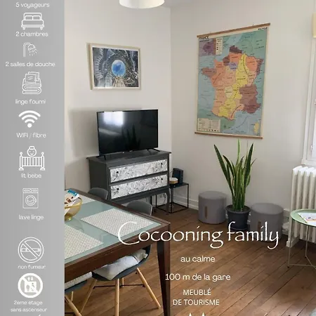 *Cocooning Family* Daire dairesinde tam donanımlı mutfağın yanı sıra çalışma masası, uydu kanallı düz ekran televizyon, duman detektörleri içeren odalar bulunmaktadır. Cathédrale Saint-Gatien daireden 1 km mesafede bulunmaktayken Saint Martin Bazilikası 1,1 km uzaklıkta bulunmaktadır.